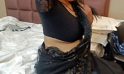 阿姨消除纱丽衬衫和演示沉重的门环在办公室,第1部分